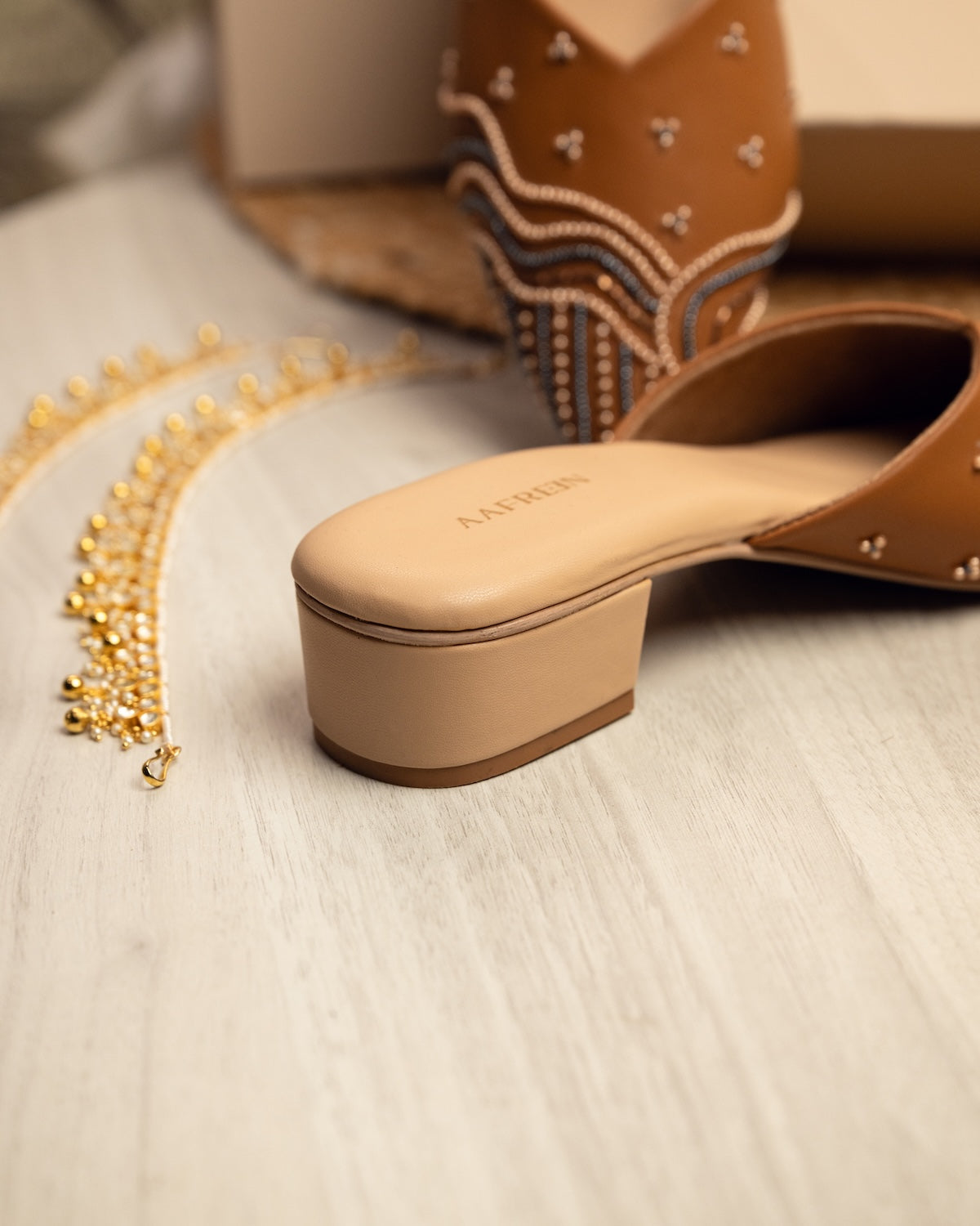 Inspired by the warmth and depth of the hazelnut hue, Hazel embodies understated luxury. The rich tan base is elevated with intricate wave-like beadwork in gold and black, adorned with dainty pearl clusters that exude a touch of regal charm. Perfect for both festive gatherings and elegant soirées, Hazel is where earthy tones meet timeless sophistication.